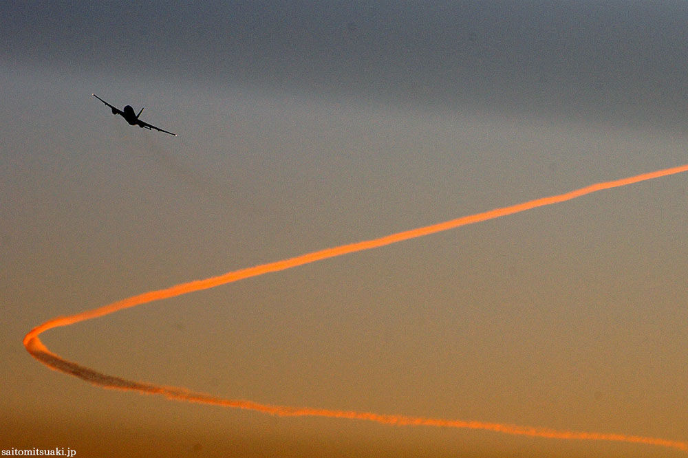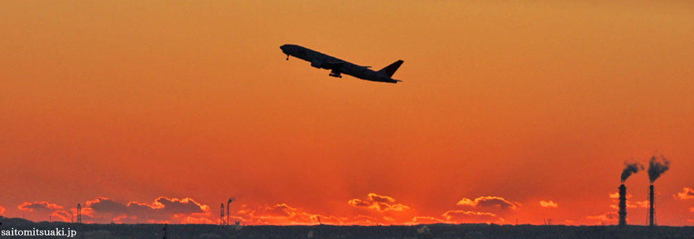 朝日が昇り始めたら、D滑走路から旅客機が次々と飛び立っていく。